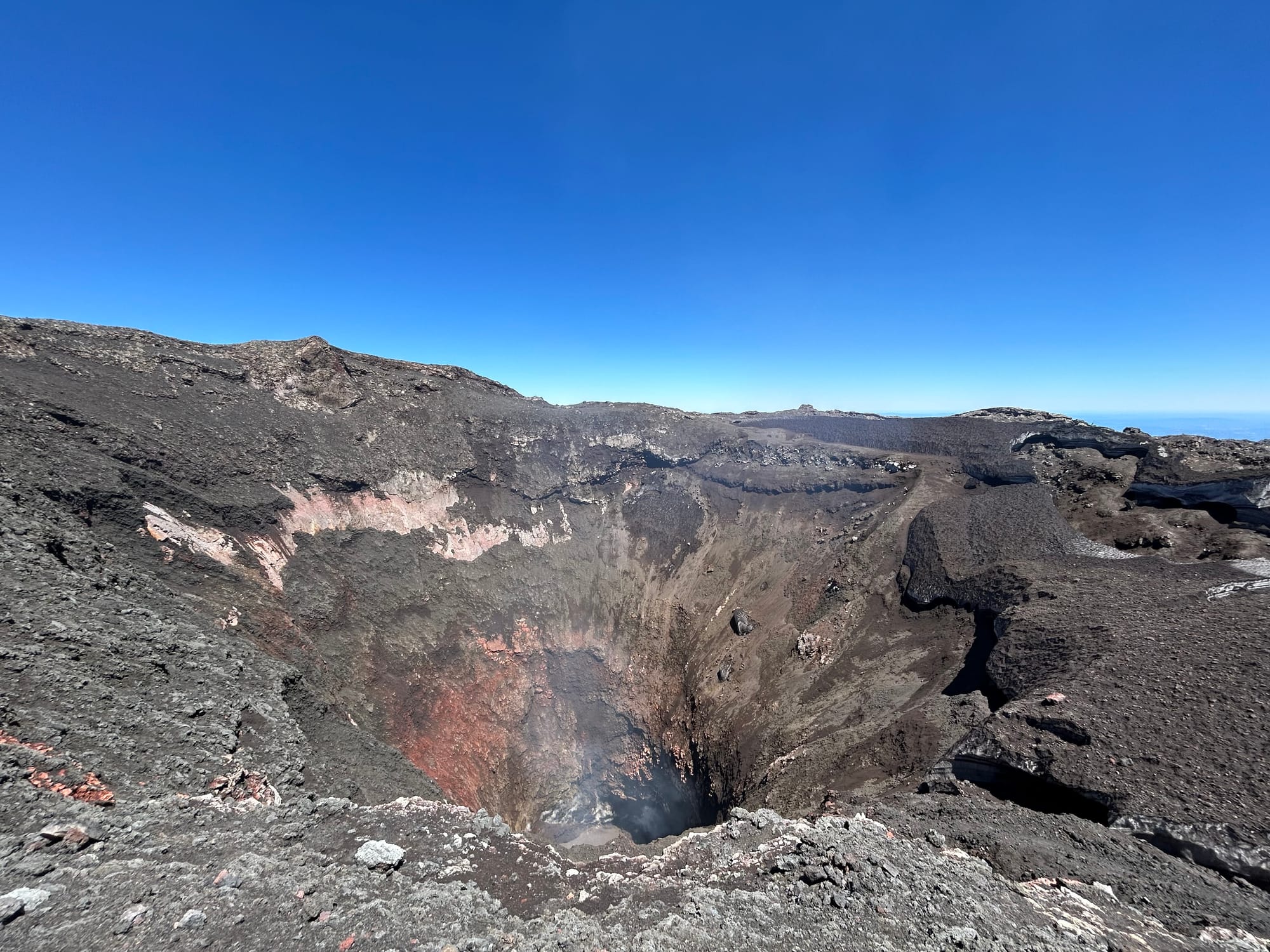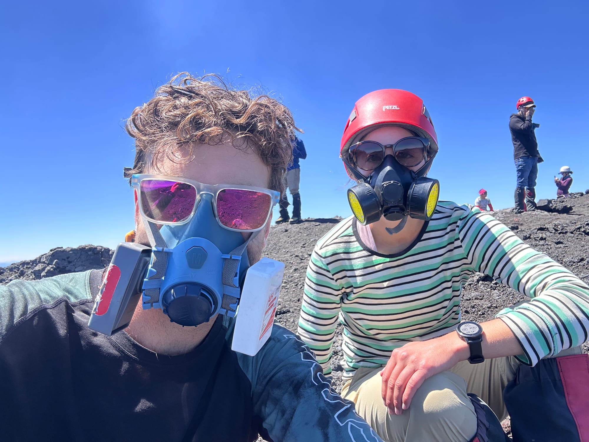 Our final big activity, and the most exciting and tiring, was climbing Volcán Villarrica, the thing to do when visiting Pucon. The top of the Volcano was about 2,800 m, and I seem to recall we started somewhere around 1,300 m? So yep, a lot of elevation gained, over only 5 km. Straight up. It was my first time using crampons and using (holding) an ice axe which was cool in itself. 80% of the climb was on snow.