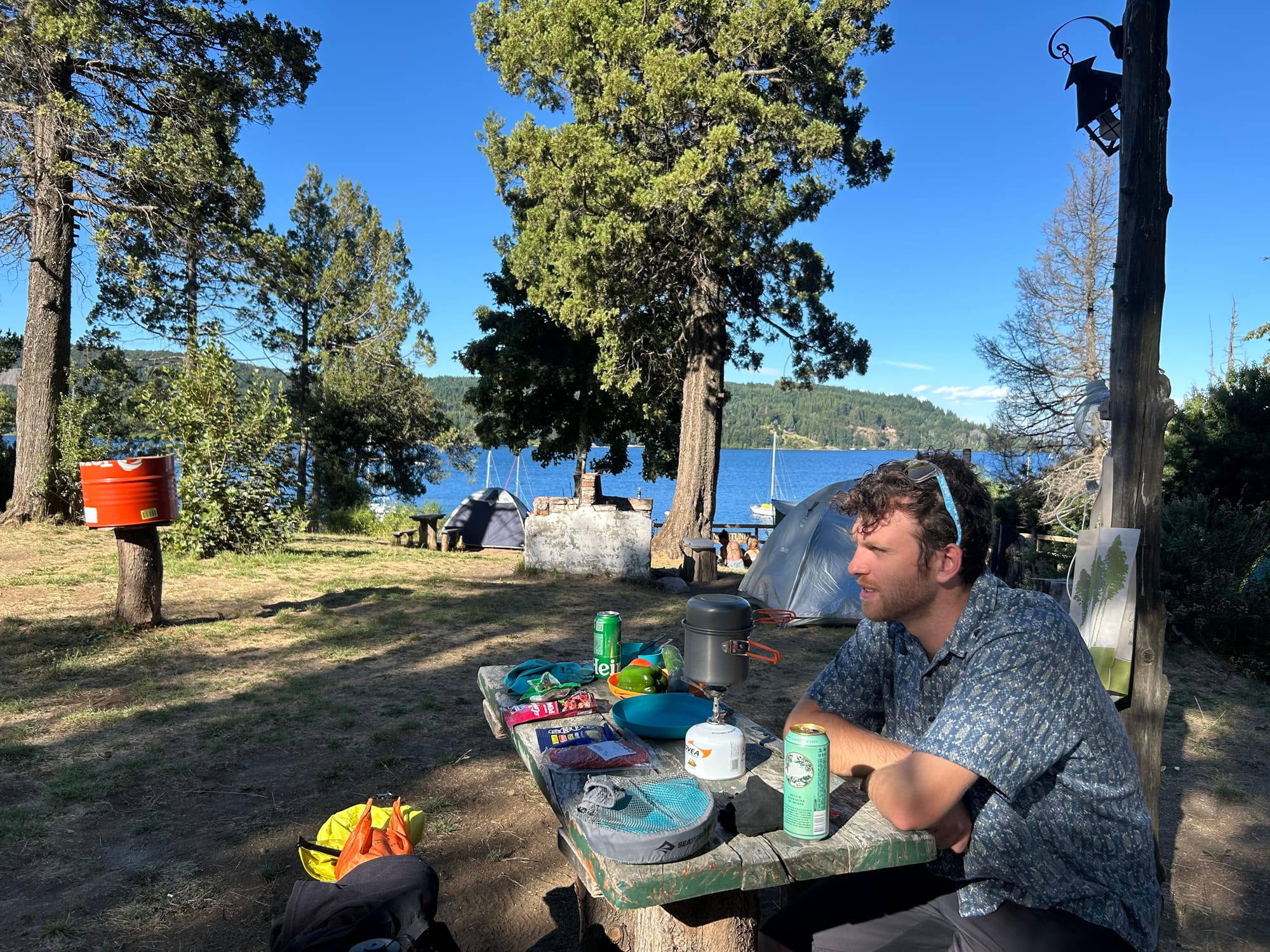 The next day Lucas and I set out for a couple days of Camping. Our initial plan was to camp near Perito Moreno Lake in Colonia Suiza so we could explore the markets there. However, after a crammed and uncomfortable bus ride with our packs, and upon arriving to a dirty, dusty and not very nice campsite we decided to abort that plan and head to Nahuel Huapi Lake to a new campsite. This campsite was a lot more pleasant so we pitched the tent. The campsite was nice, however, it was a very windy day, and the dirt roads meant dust was flying everywhere. Our moods were quite low after the day we had, though we managed to find ourselves a nice burger and beer for dinner (inside & out of the dust) which brought the spirits back.