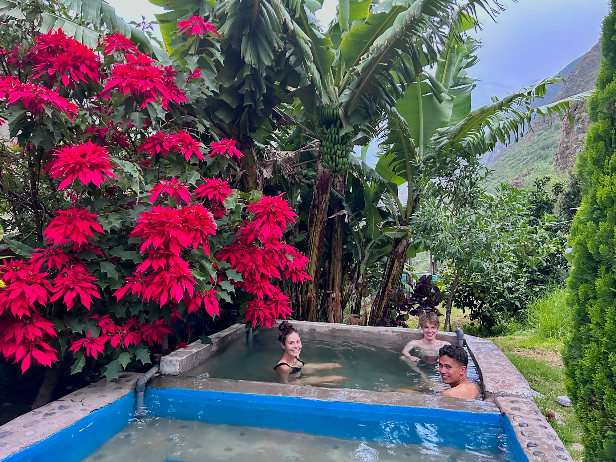 We arrived at our accomodation and went straight to the hot pools which were not super hot but definitely cozy. Around us were endless fruit trees of bananas, oranges, lemons, as well as some cactuses with their tuna fruit.