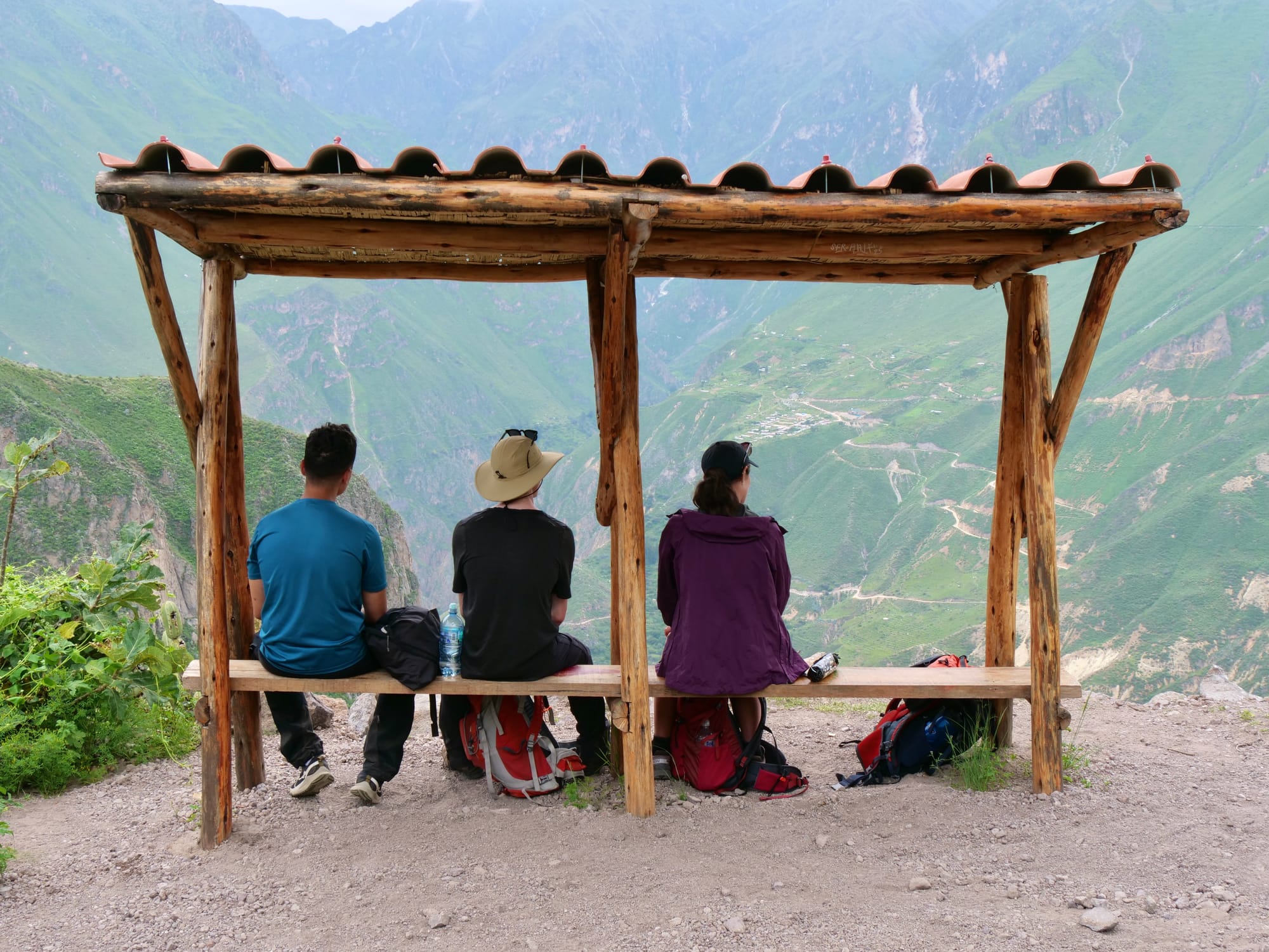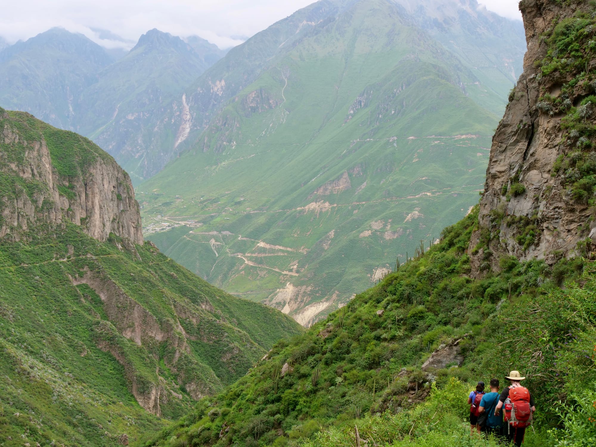 Day one started with two long colectivos from Arequipa to Cabanaconde. By the time we arrived in Cabanaconde, the mini-van was packed to the brim with people. Every time someone would wave us down we thought surely we are full now, but the driver would stop and they would somehow squeeze themselves on. This happened multiple times with everyone inside the van doing what they could to make space. We even had an elderly lady on crutches climb on as it was near its fullest!