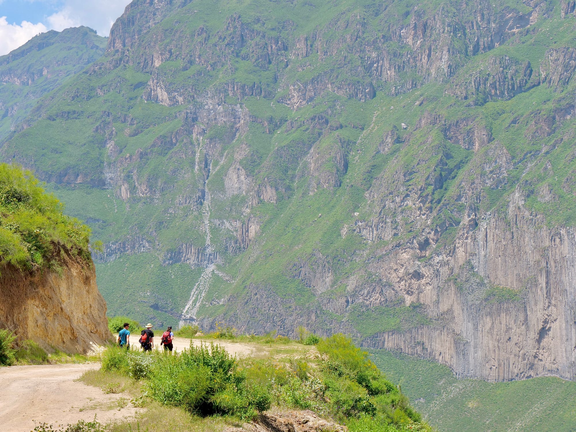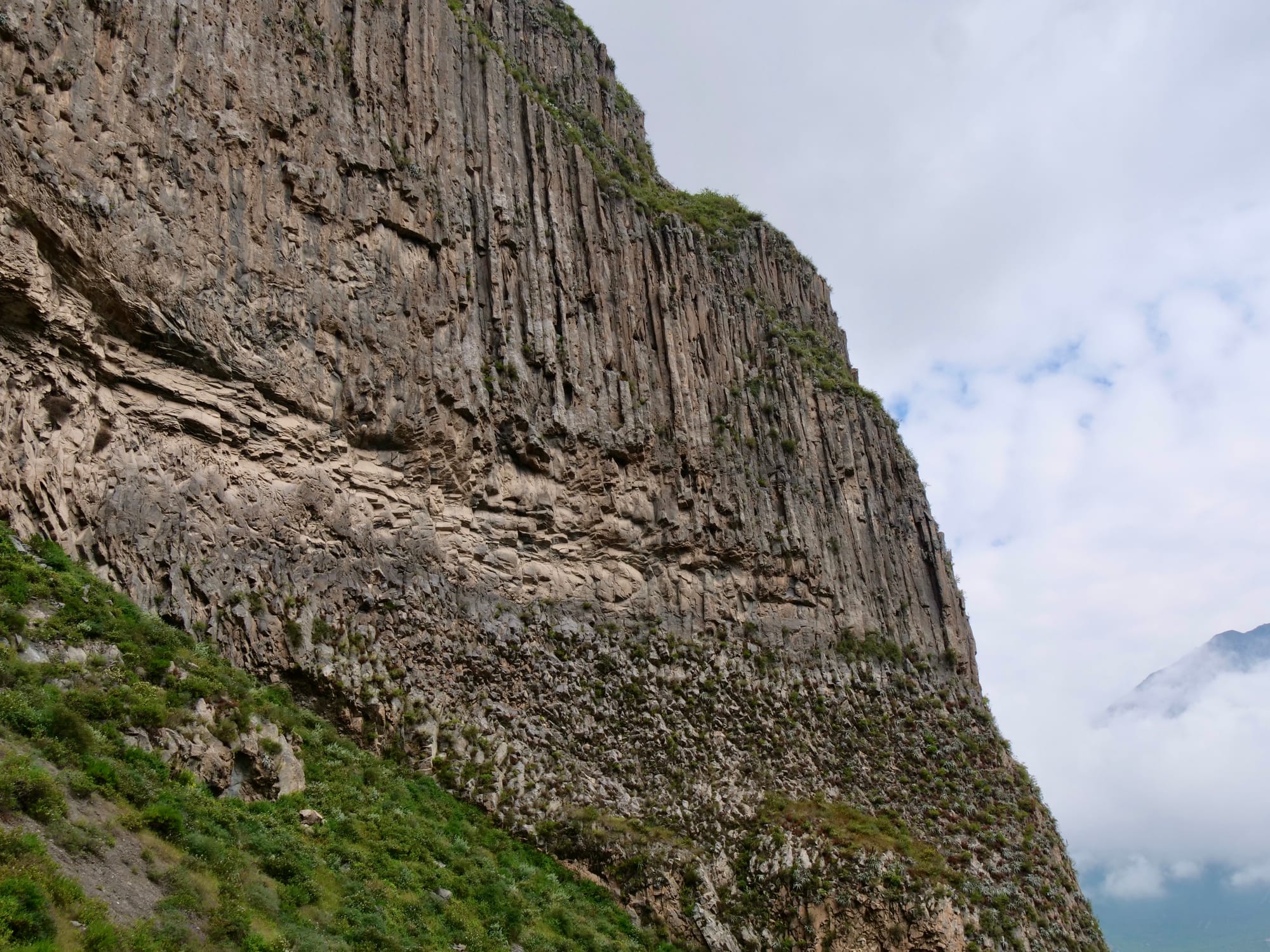 Sheer cliff faces towering over us.
