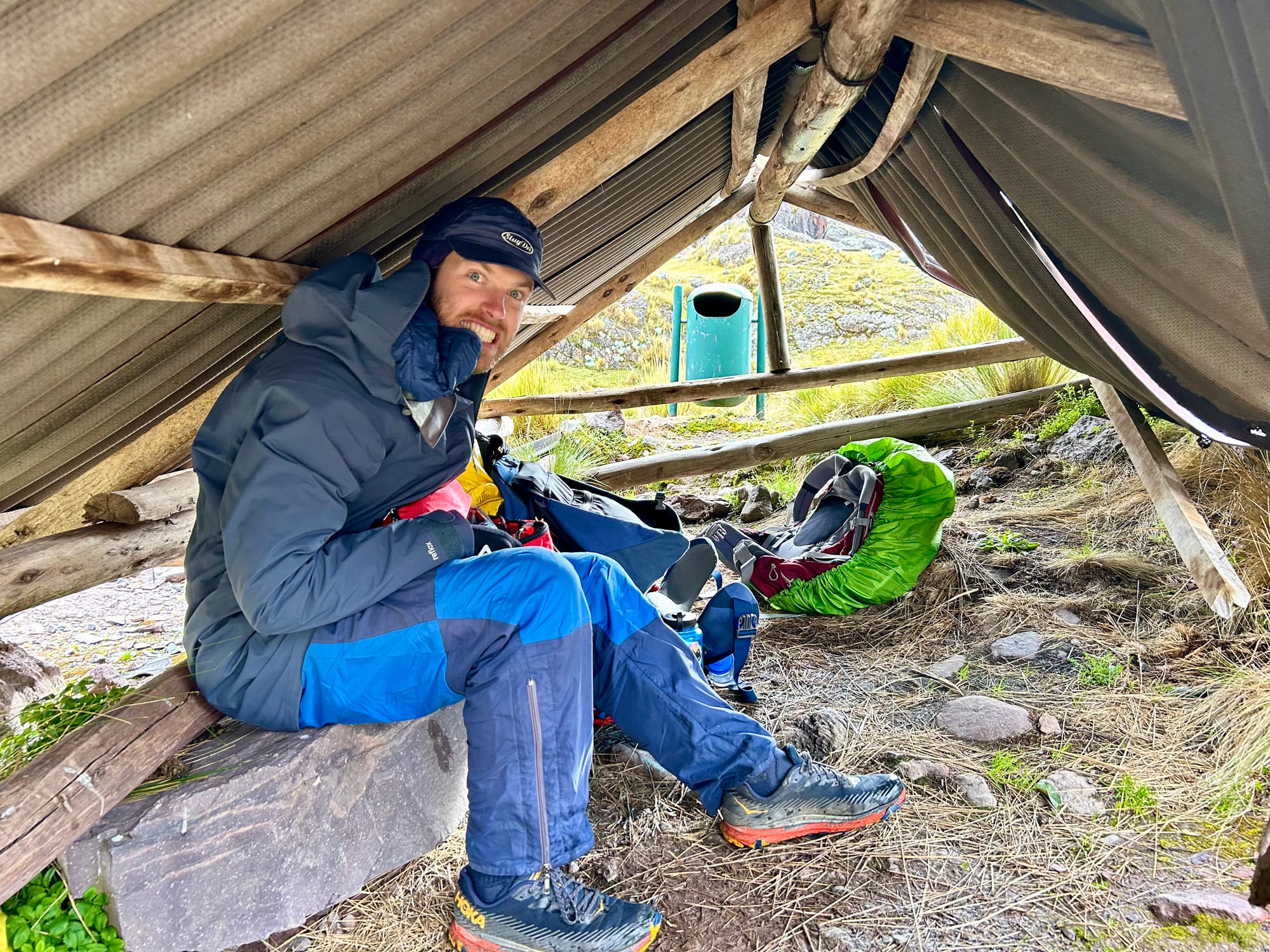We walked another hour or so once down in the valley towards our new campsite. As per usual, it started pouring with rain as we were a couple of km’s from the campsite meaning we got there drenched. Fortunately this campsite had a shed we used to dry out in and cook, etc. It even had a toilet and sink which was luxury! We paid the farmer S/20 for this campsite.