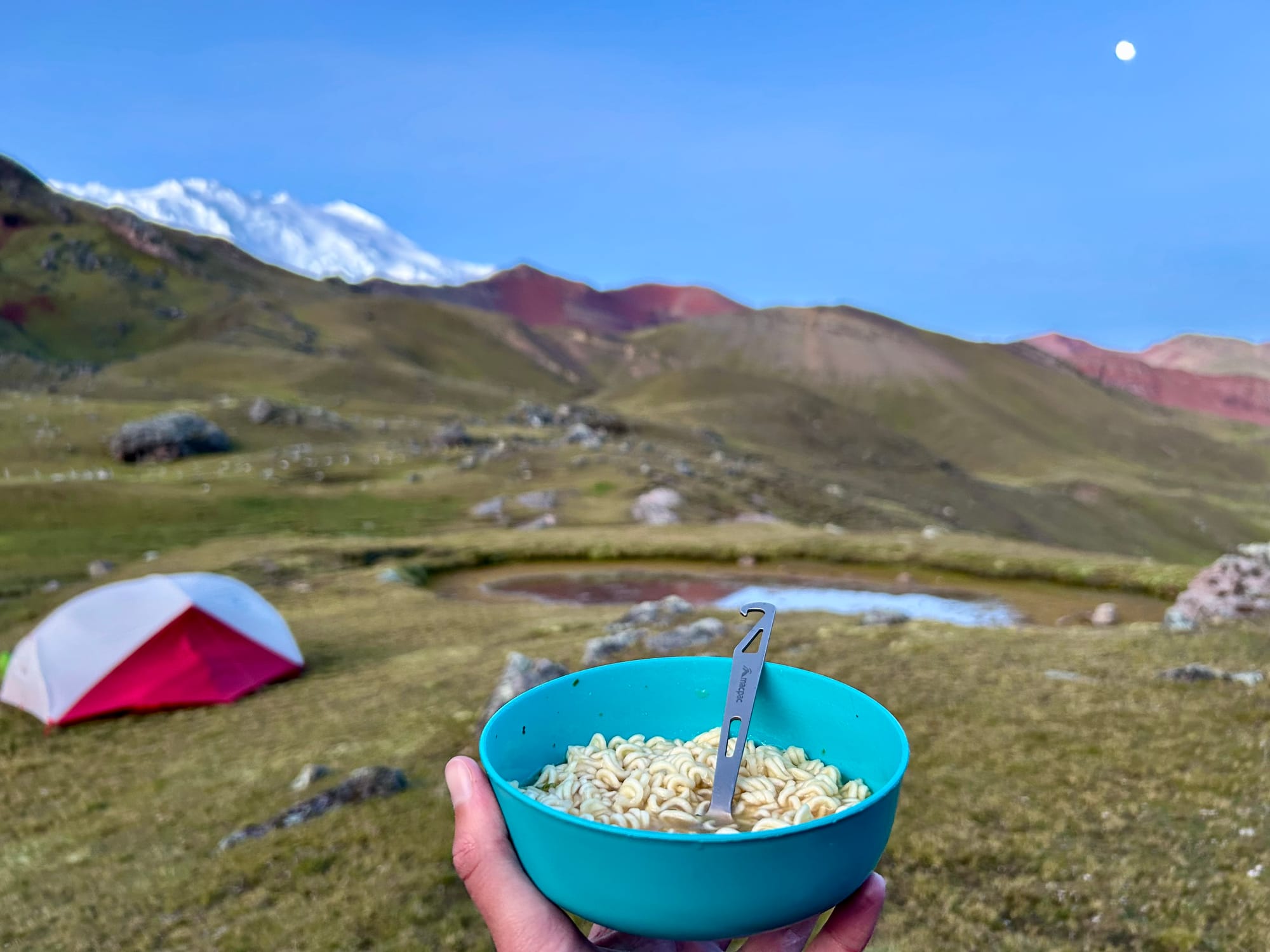 We built up the motivation to climb out of the tent about 5pm for some dinner, our go to was ramen and tuna. Thankfully by that point I was feeling a lot better so we made the decision to continue on with the circuit, but without the detour to Rainbow Mountain, making it a 4 day hike instead of 5.