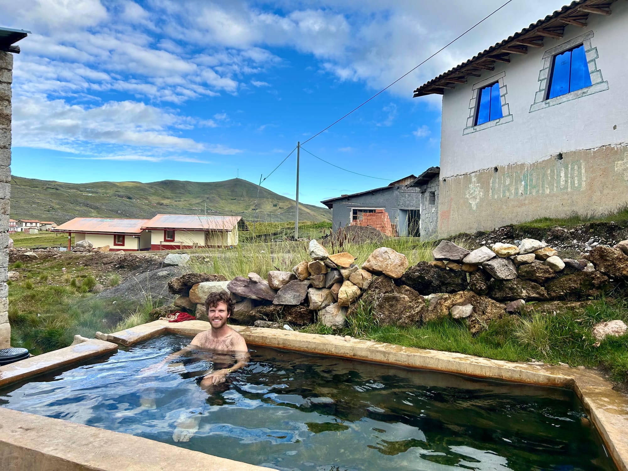 We asked the hostel owner if we could have showers, and he pointed to the thermal bath out on the lawn haha. Was amazing for us to not only clean ourselves but get to relax in a thermal spa after a 4 day hike. Just felt bad for the other guy in there with us cause we stank…