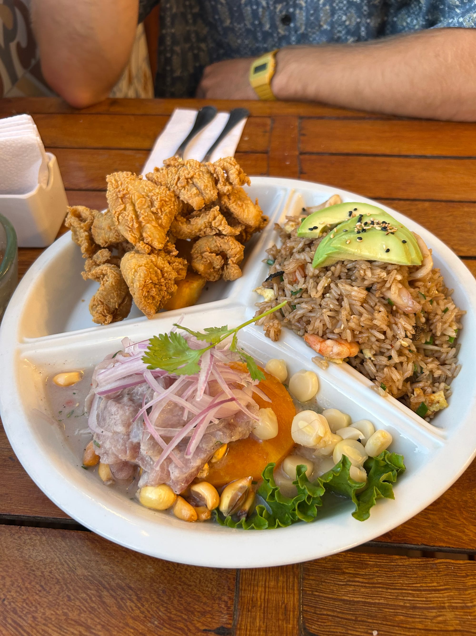 We woke up feeling pretty fresh all things considering. We got a one hour bus to Paracas on the coast where we stayed for two nights. Unfortunately because it was Easter holiday over here it meant all hostels were booked out, and the Airbnb we did book was quite pricey for what we got. Anyway, we headed out that evening for a stroll and dinner which was lovely. The beach was packed with holiday-goers. We also ended up getting a trio of standard dishes of the area including ceviche, fried fish, and a seafood chaufa rice. Sooooo yum!!!