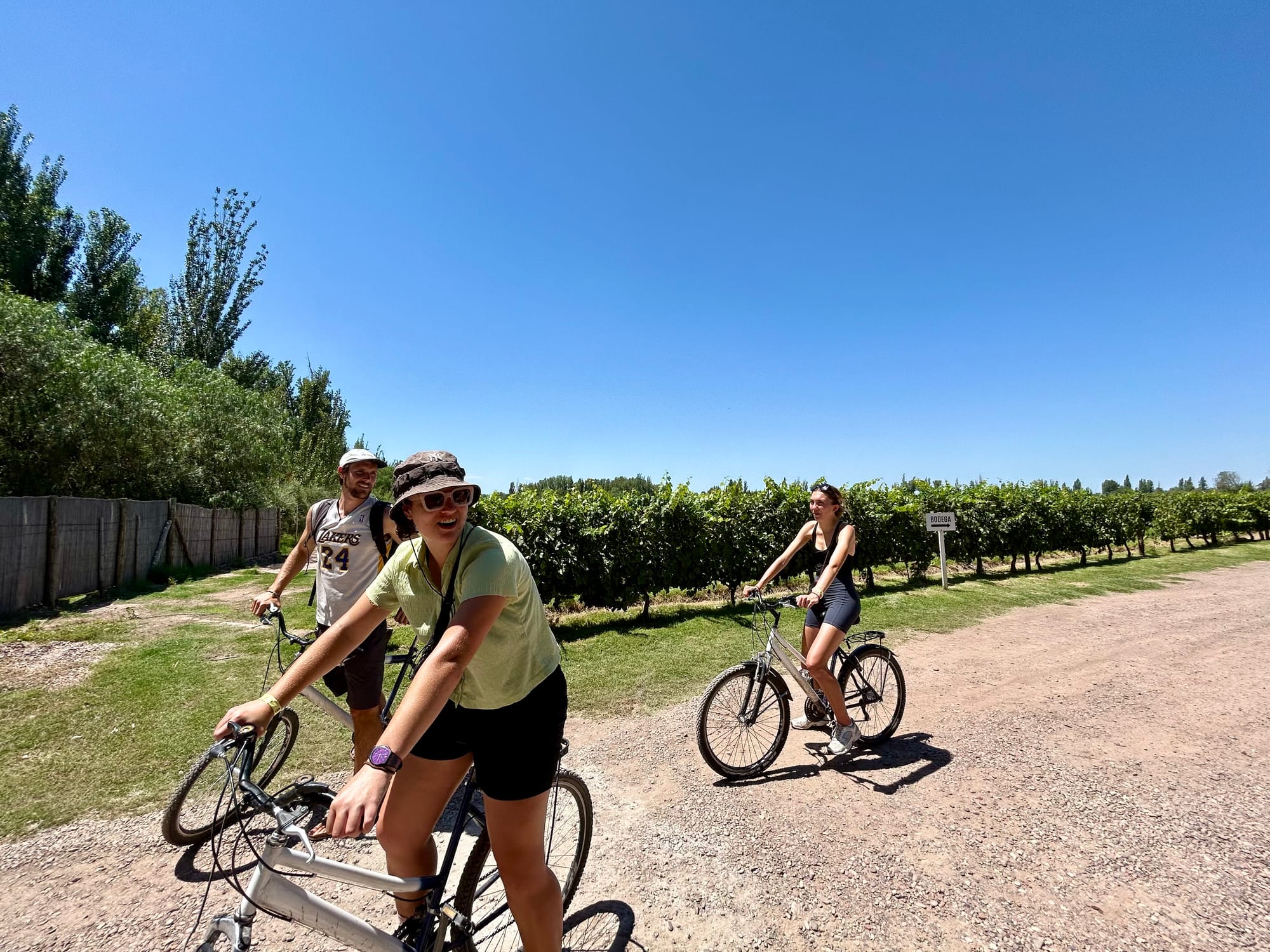 Day 2 we went out to the wine region of Maipu where we hired bikes for the day and toured around the vineyards. I think all up we biked under 14 km so thankfully the time spent on the bikes was kept to a minimum. It got up to 35 degrees so even the smallest amount of peddling had us drenched in sweat. Our first stop was Mevi where we chose 3 wines to taste, including the Malbec. Malbec is a variety of red grape originating (or only growing) in this area of the world. I wouldn’t write home about any of the wines I tried at this vineyard.