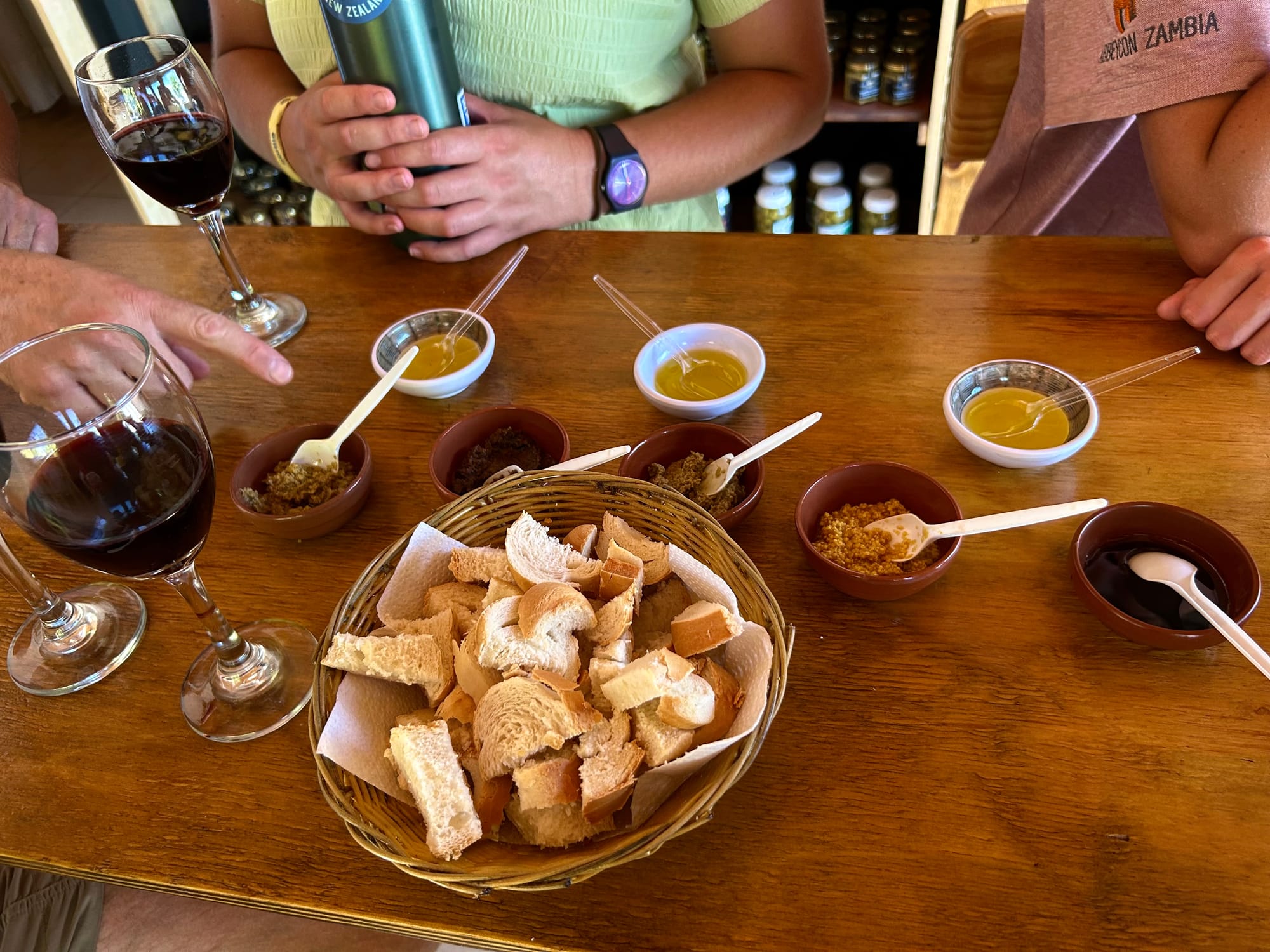 Back on the bikes we got taking us to our final stop, Entre Olive, where we got to taste their homemade olive oils, olive dips, wine syrup (like balsamic glaze), chocolate, and wine liquor. As well as a complimentary glass of wine. This was a fun way to round off the day.