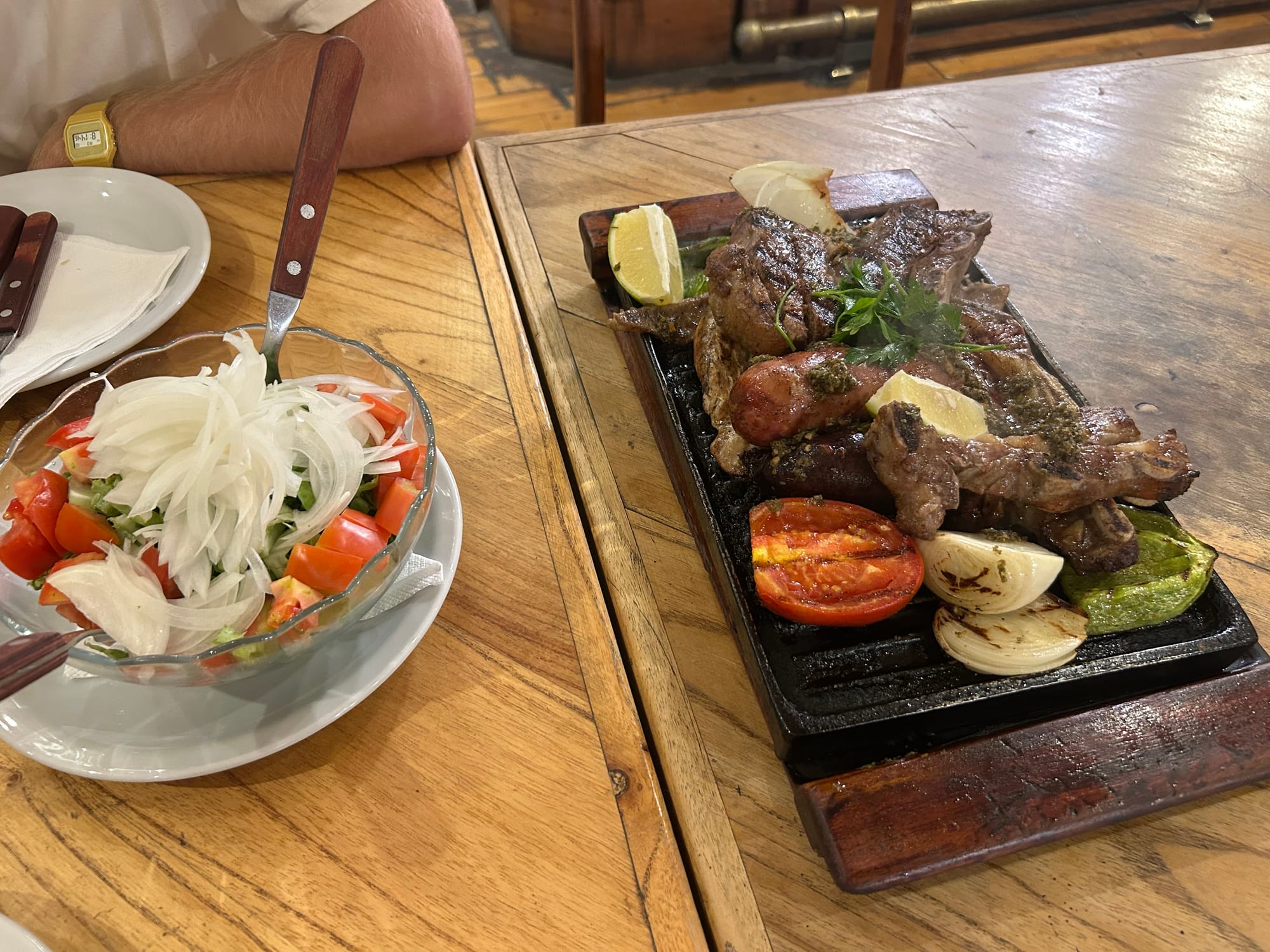 Anyway, the meat was AMAZING!! So tender and packed with flavour (we noticed chimichurri was rubbed on it, the salsa verde common on Chorripans here). Very glad we tried asado before leaving Argentina, though it did come at a cost, around $30 each.