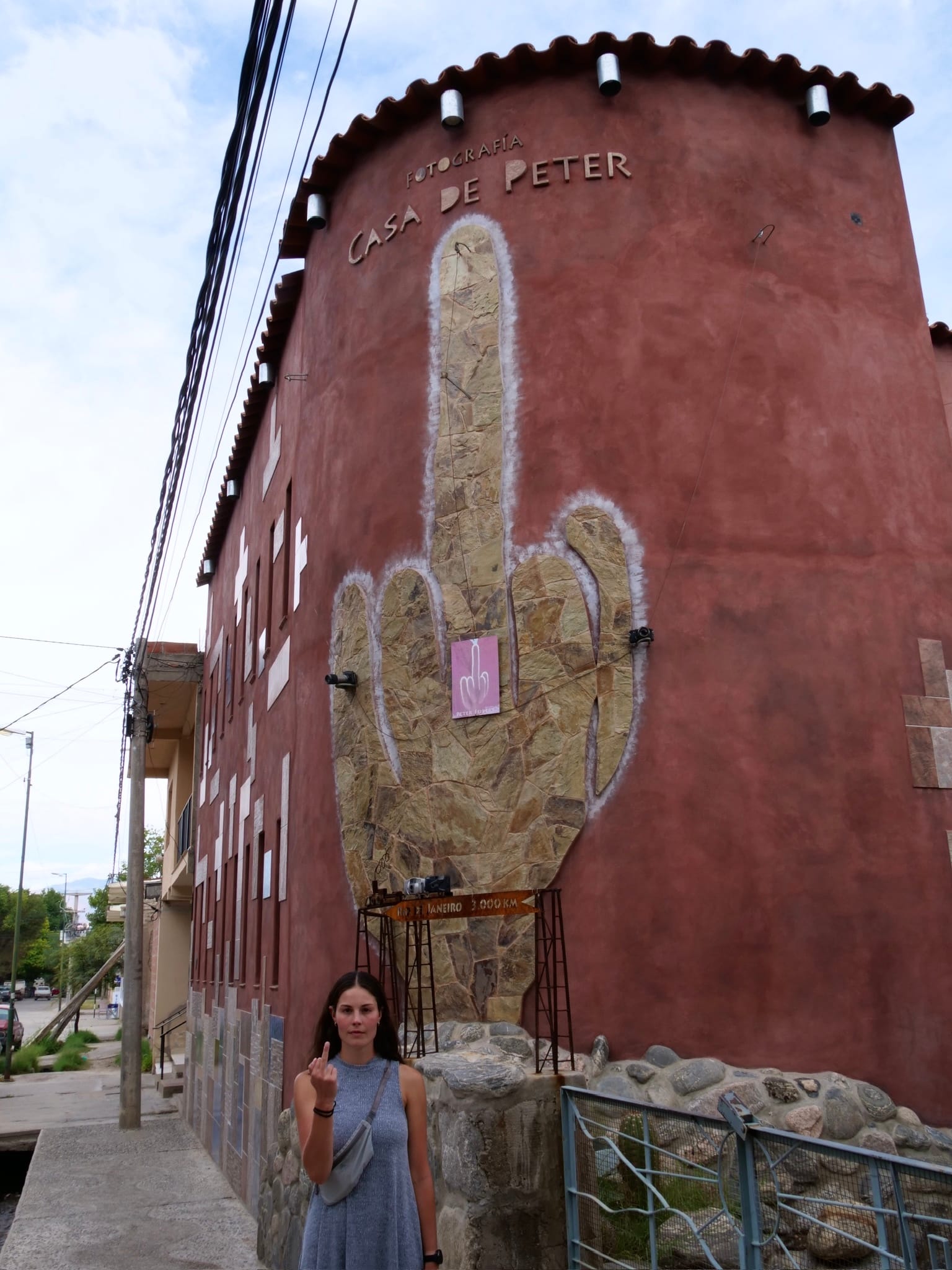 Once we got back to the Airbnb we showered and set out for the one other thing I wanted to tick off while in the area, a bodega (or winery). The one we ended up at was beautiful and had tasty wine. We tried a few wines, and got some cheese on the side. I particularly liked the sweet white wine I tasted, possibly close to a dessert wine. We went for a stroll through the vines before we left. We also passed by this funny painting on a building of a cactus shaped like it’s pulling the fingers. Quite clever!