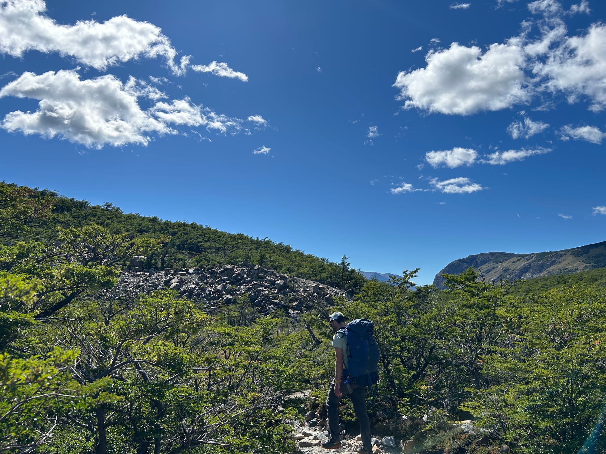 Day 2 and 3 of the hike felt a lot easier once the hangover had disappeared. On day 2 we hiked to Poincenot campsite located at the base of the hike up to the Mt Fitzroy viewpoint. On the hike we walked past Laguna Madre which looked perfect for a swim spot, in fact, we walked past 4 hikers skinning dipping right next to the track. We went and set up our tent and walked back to the lake where we found a more secluded place to swim further from the track, conveniently forgetting our togs also.