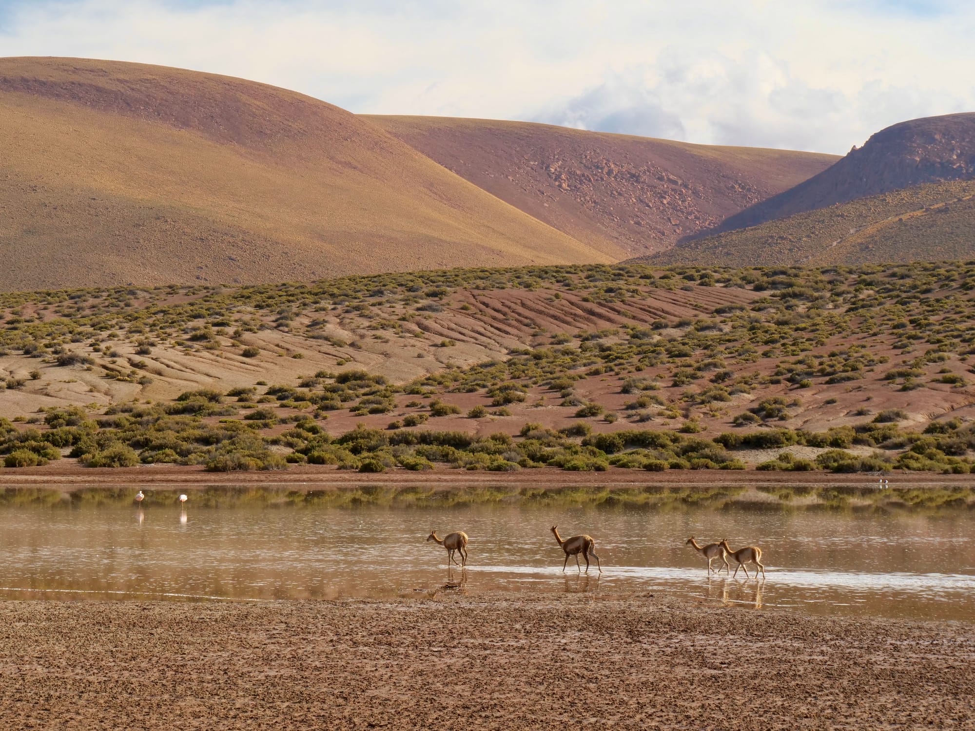 The following day we endeavoured to start earlier and make the most of the car, heading into the Andes at 8am, back towards the Argentinian border we crossed on our way here. We originally set our sights for Salar de Tara but soon discovered it required a 4WD which we did not have (despite the high clearance and rear tray). As a result we simply drove the road to see what caught our eye. We ended up stopping at Mirador Quebrada Quepiaco to spot some vicuñas and flamingos before heading further East to Monjes de La Pacana for some impressive rock forms.