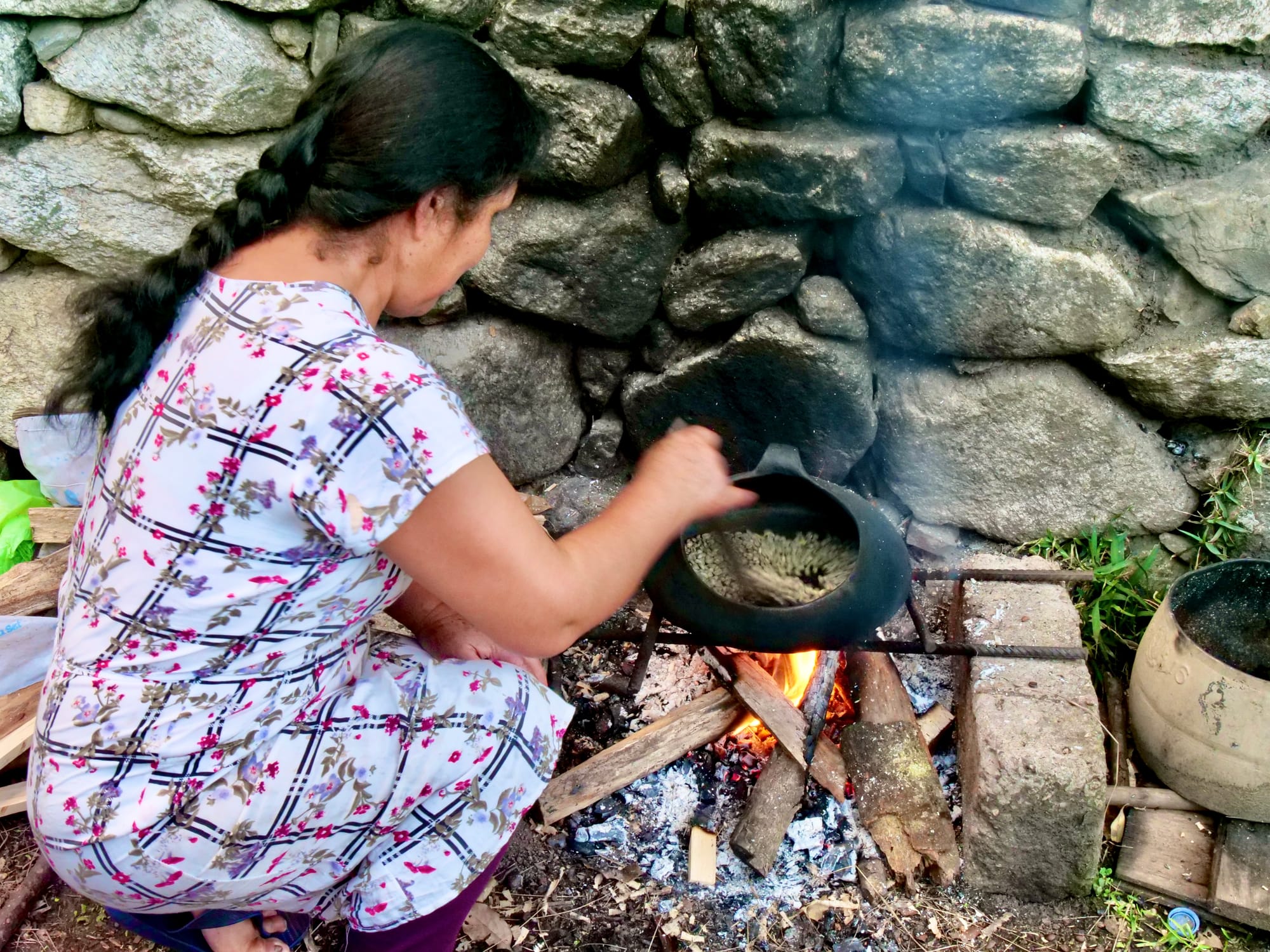 The terracotta pot chosen for its flavour enhancing qualities - Victoria’s preference over the stainless industrial roasters.