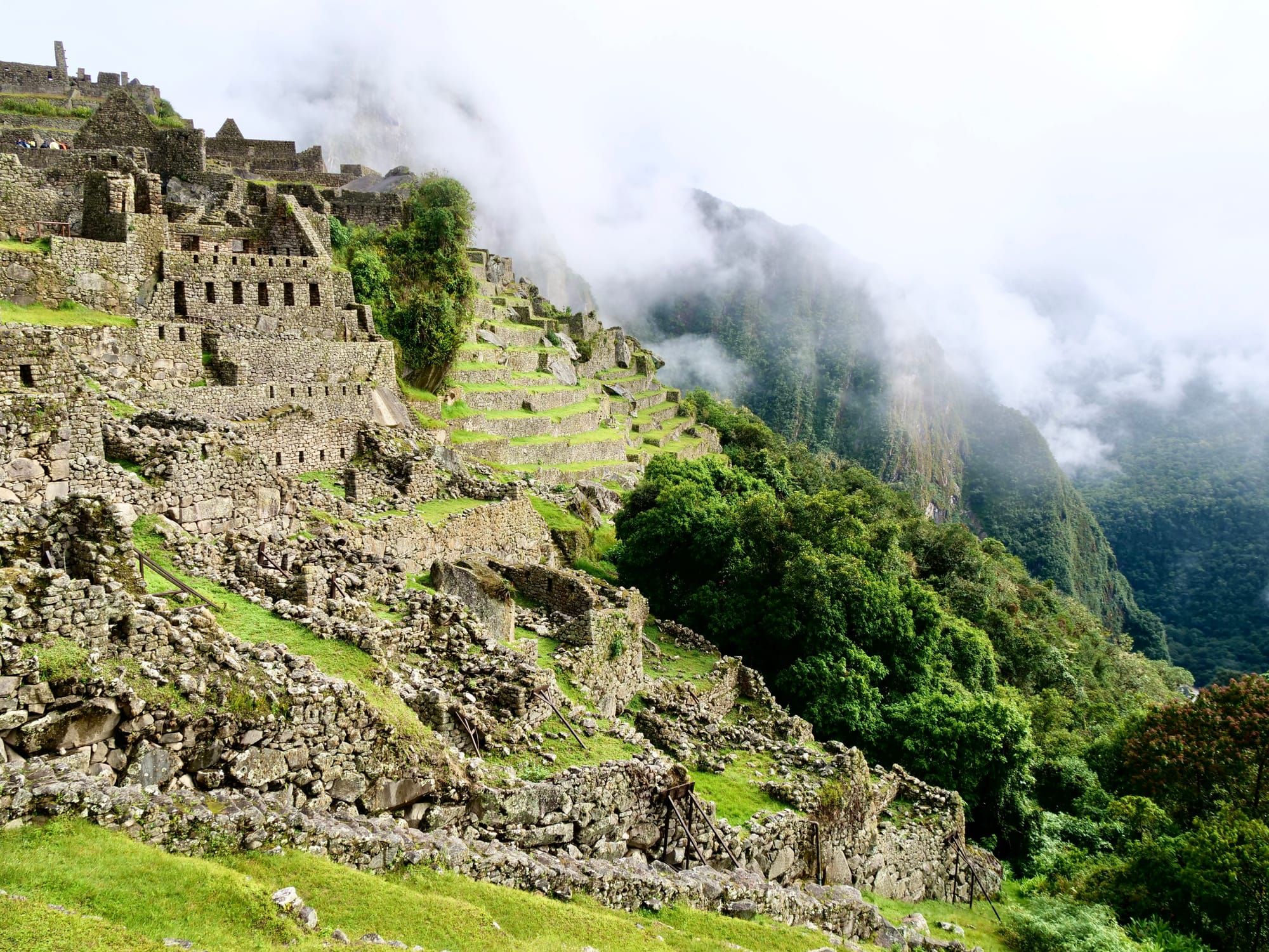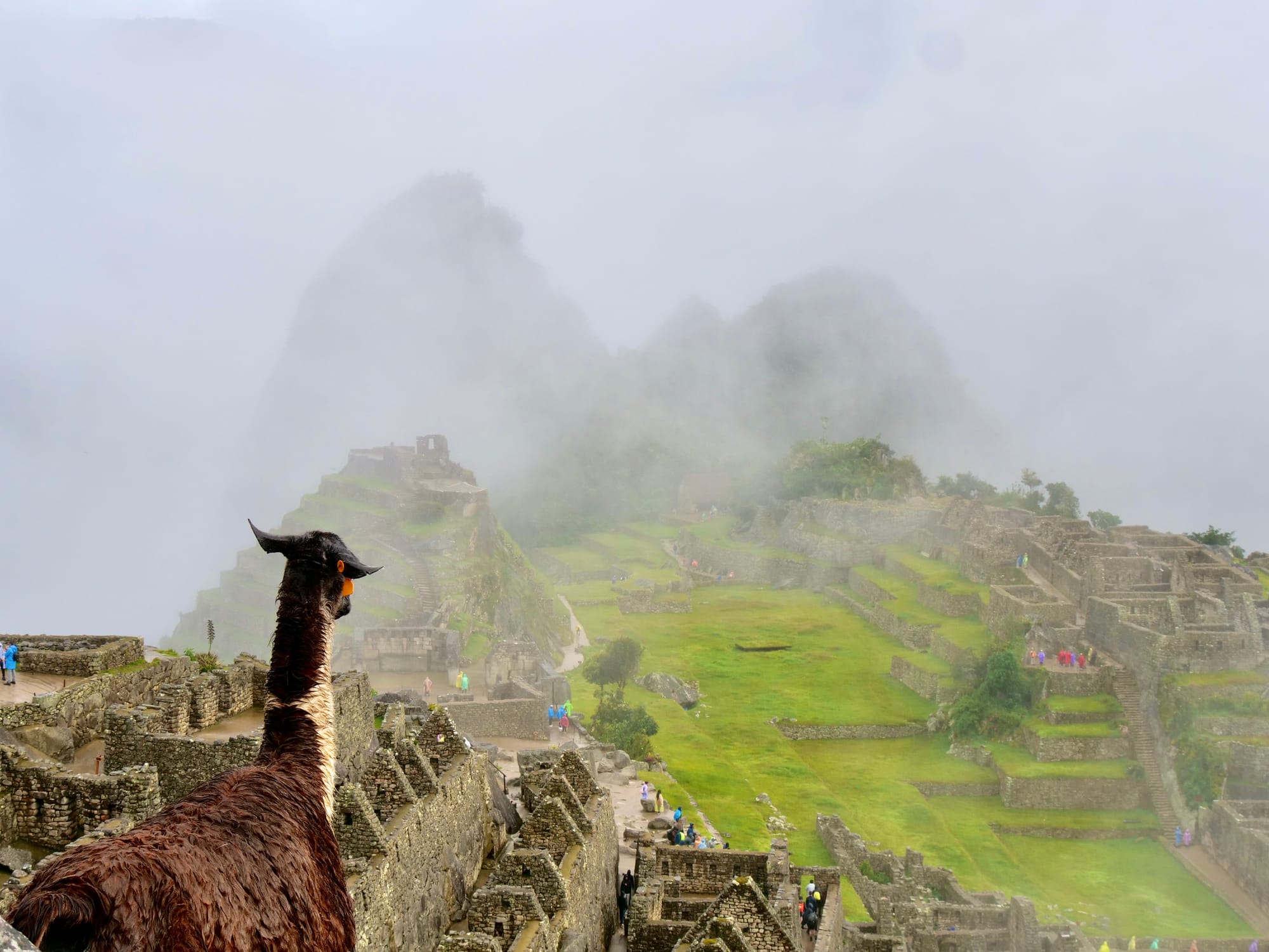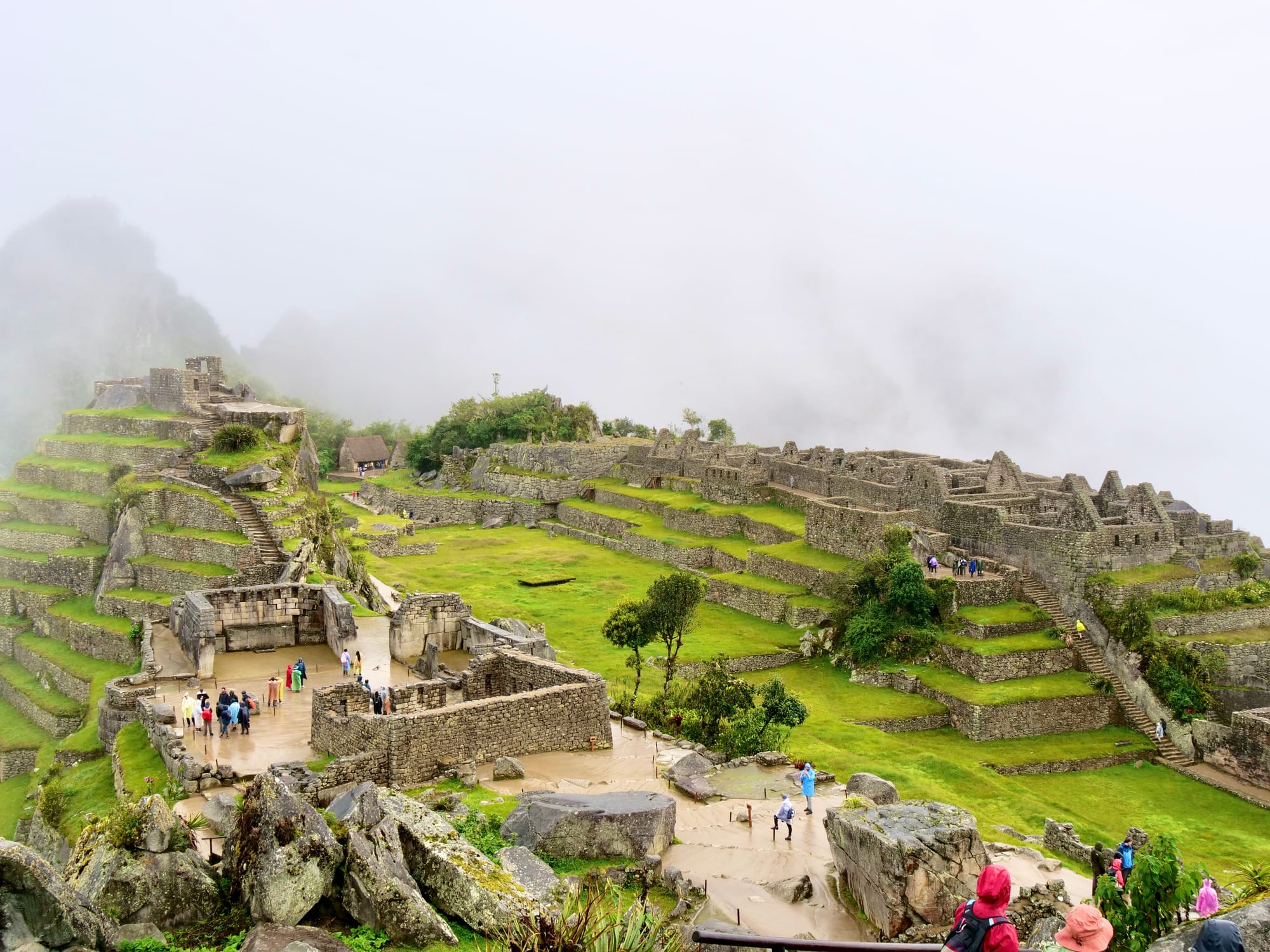 A few hours later we reached the top as we looked out towards where Machu Picchu apparently was, though all we could see was white. Almost an hour of waiting and no improvement saw us give up and head down the hill. About 30minutes later though we were unexpectedly spat out of the bush on to a clearing with a perfect view of the ancient city! The anticipation was building.