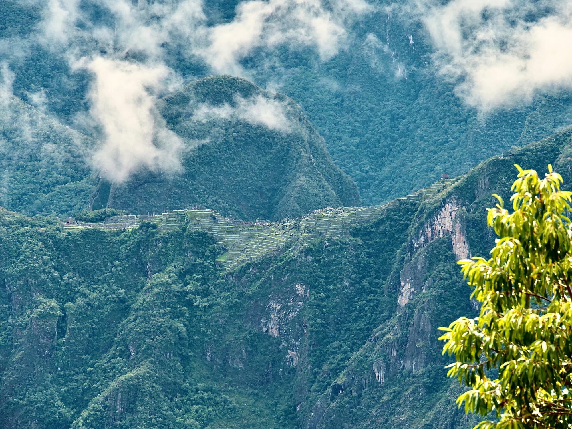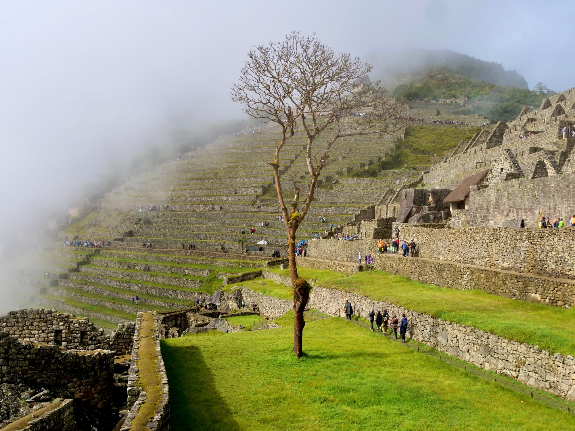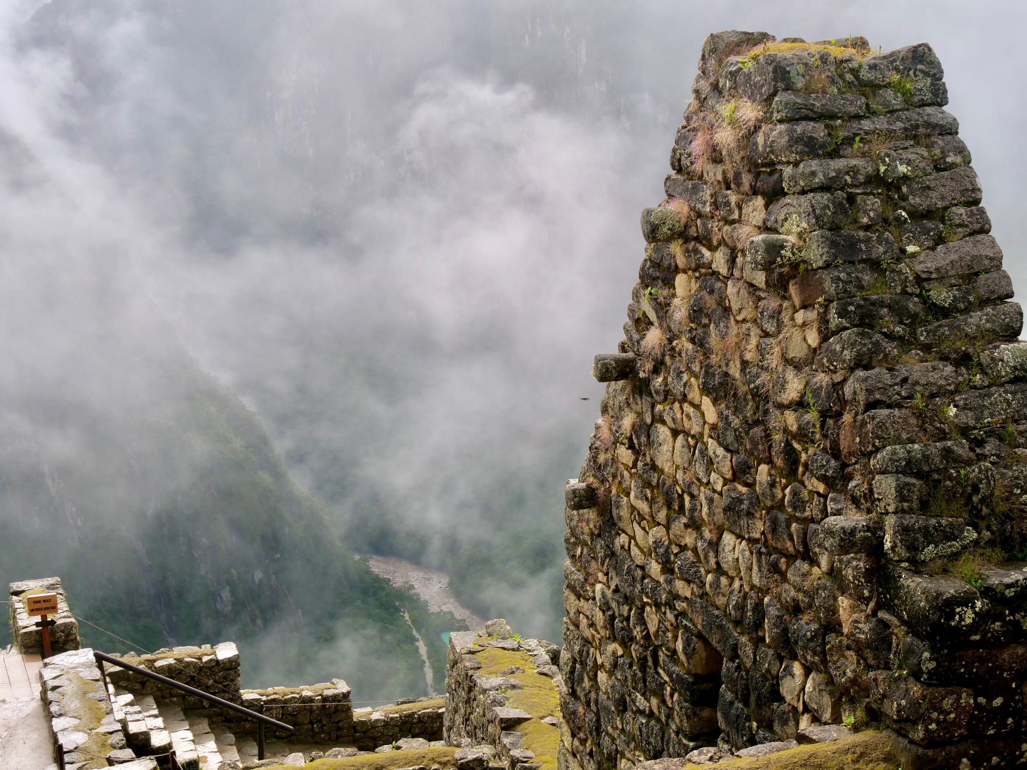 A few hours later we reached the top as we looked out towards where Machu Picchu apparently was, though all we could see was white. Almost an hour of waiting and no improvement saw us give up and head down the hill. About 30minutes later though we were unexpectedly spat out of the bush on to a clearing with a perfect view of the ancient city! The anticipation was building.
