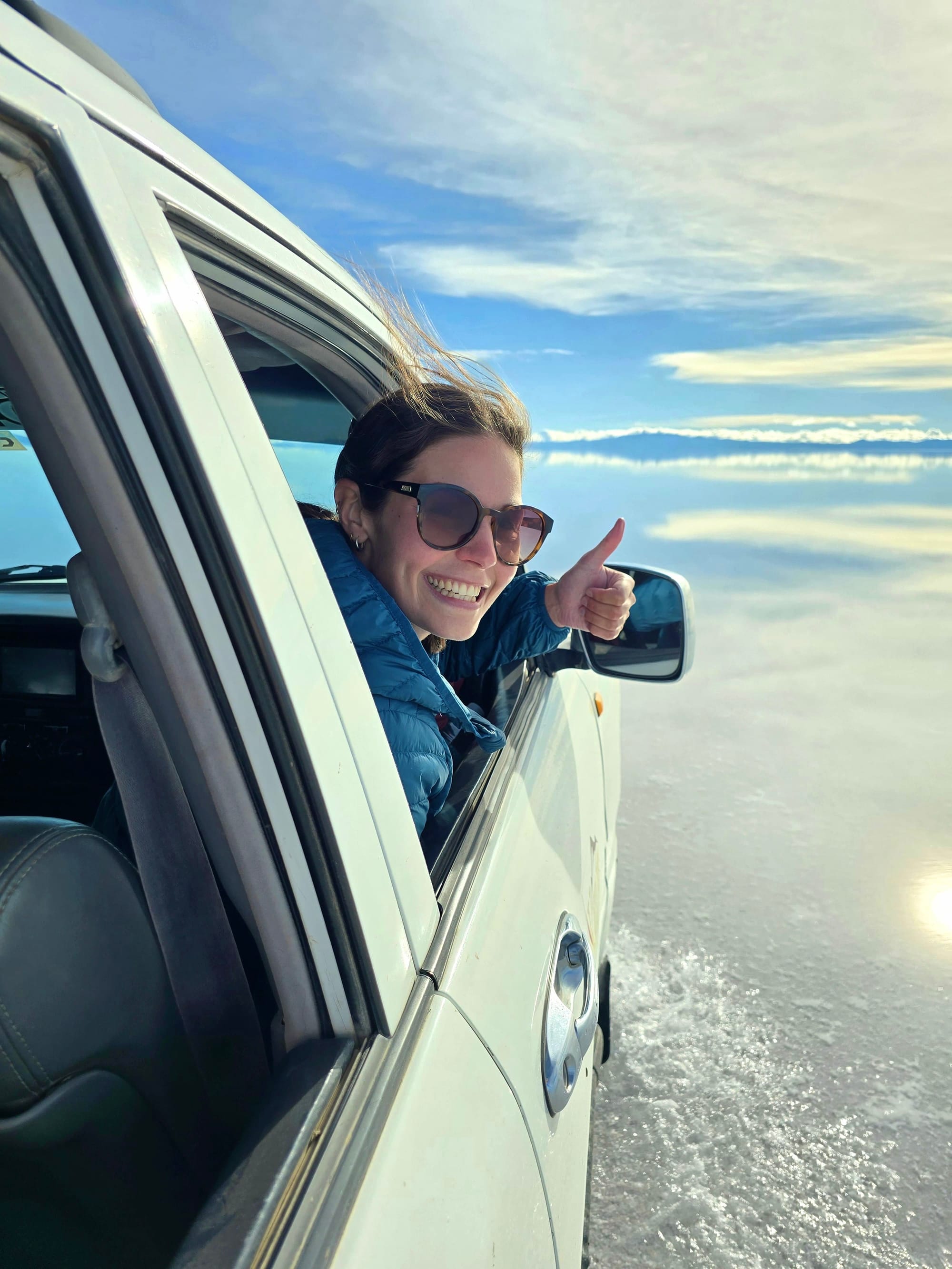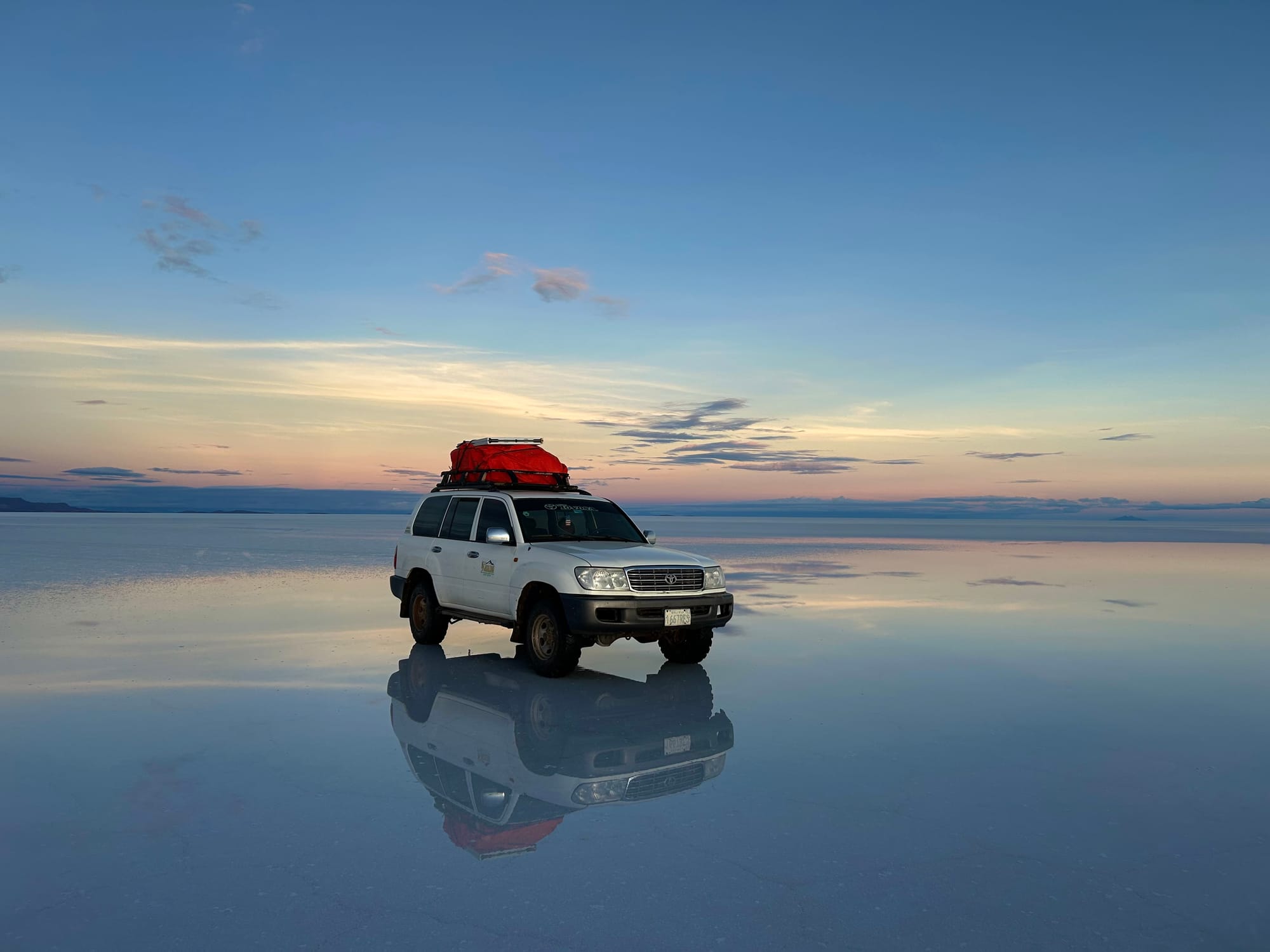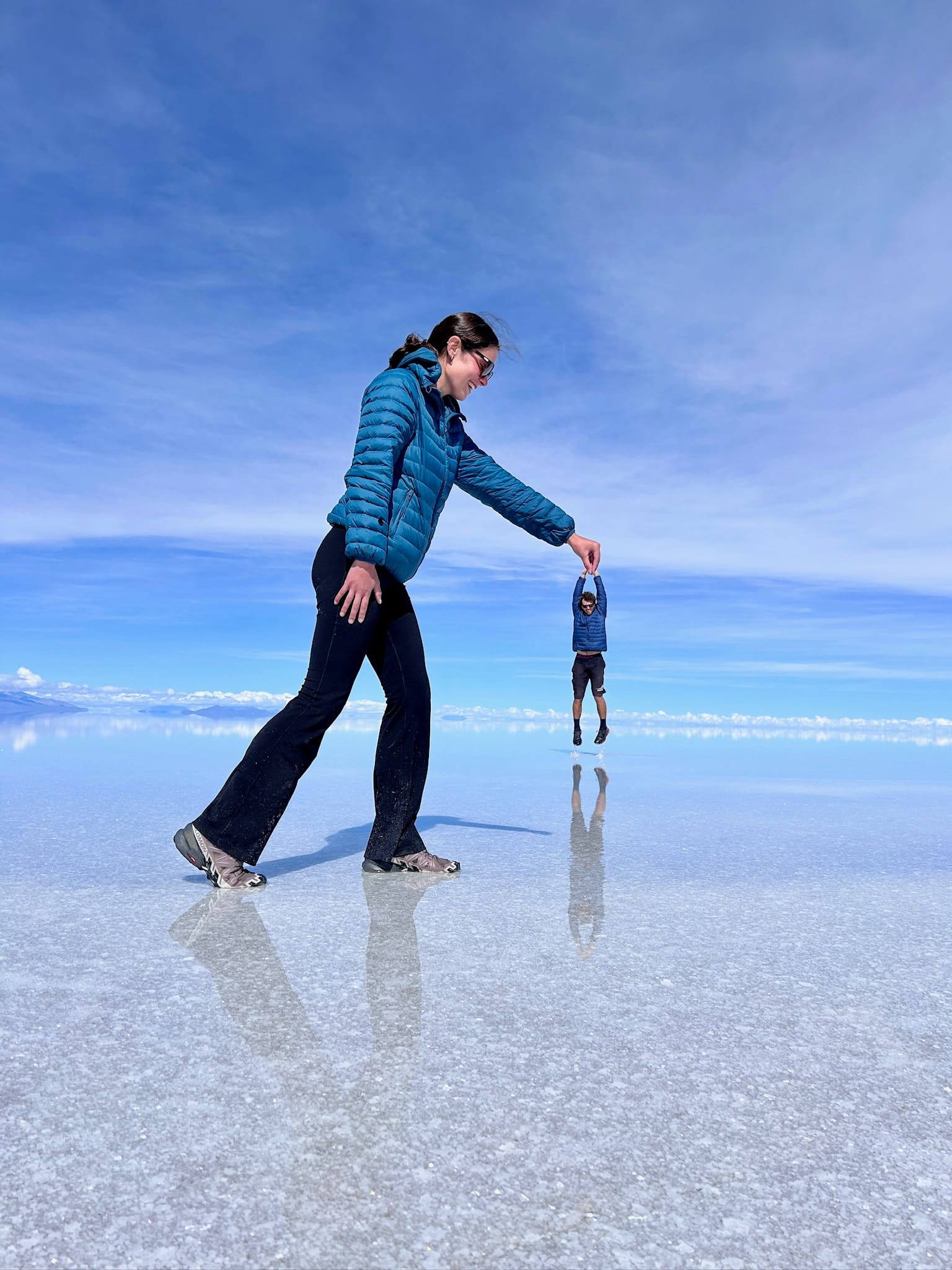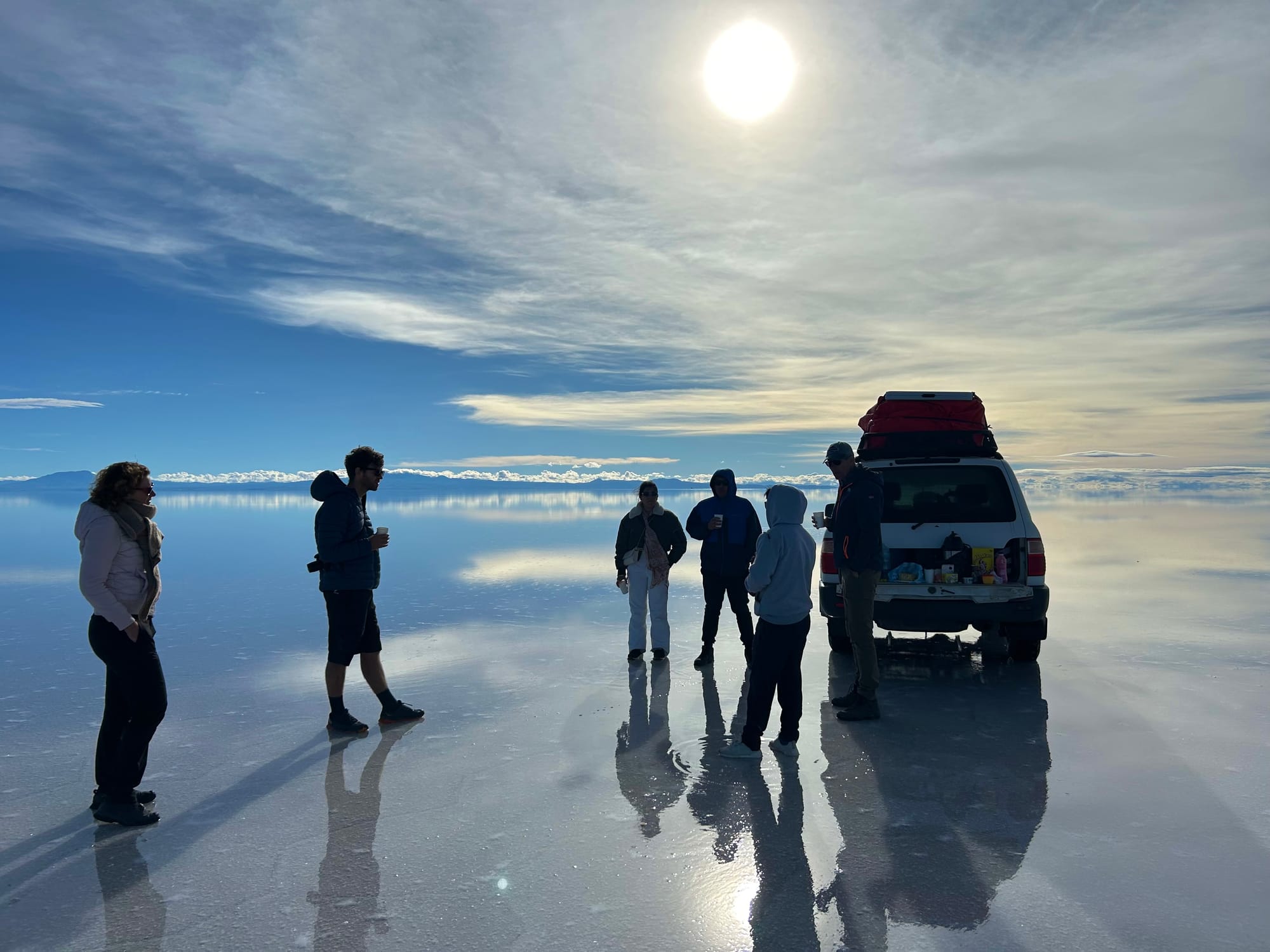 We spent most of the time trying to get creative photos with the reflection and playing with perspective. It was so much fun! Once off the lake we noticed our shoes and pants were covered in salt! We also had breakfast on the lake, standing around the food perched on the back of the truck, it was a vibe.