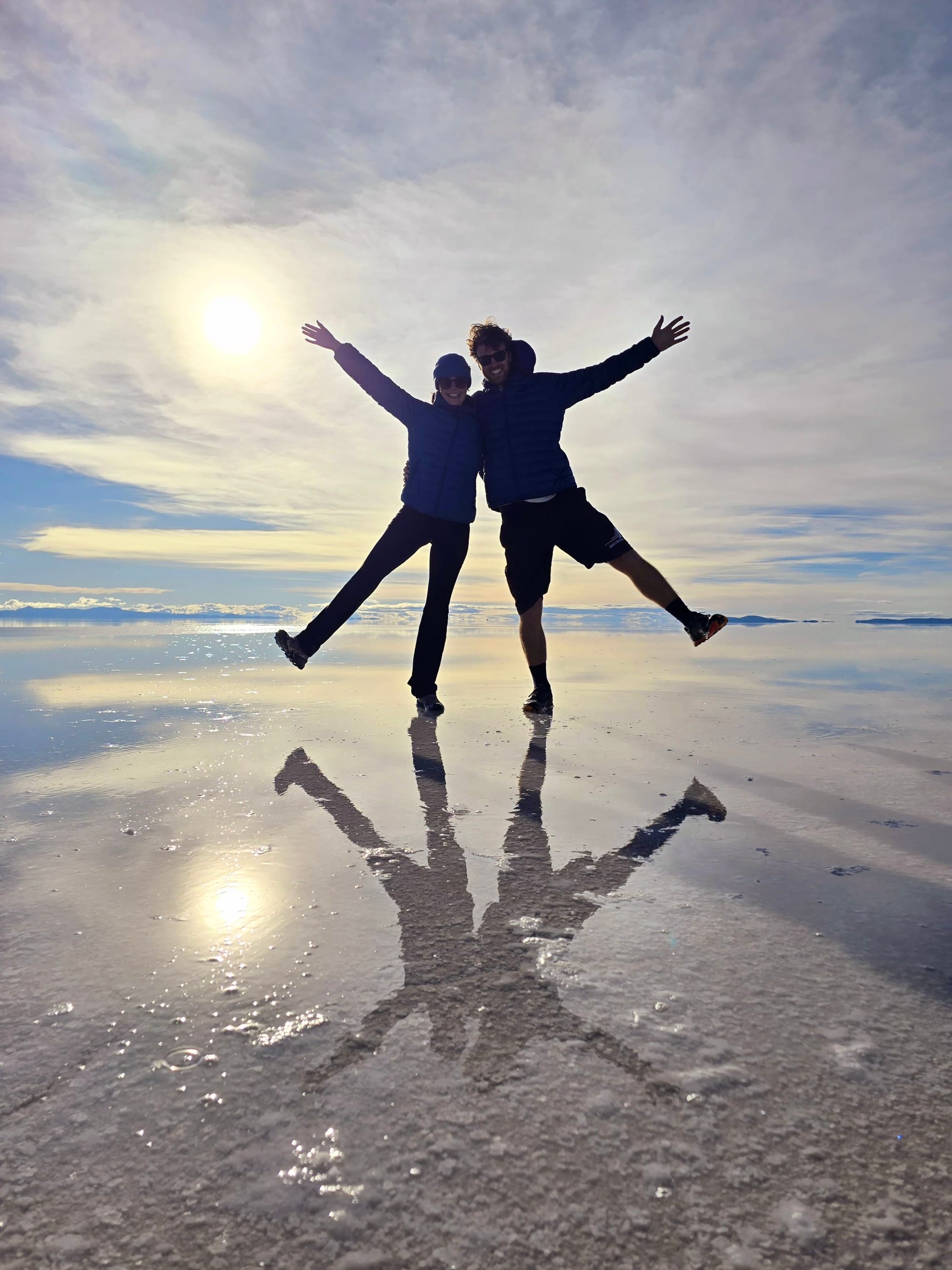 We got to our hostel, a salt hotel, made completely of salt at about 5.30pm (so a much shorter and less tiring day). This was in Villa Martin, a tiny town with salt hotels/hostels dotted around. It was on top of a bit of a hill and you could see right out towards where the salt flats began, and where we’d be tomorrow morning. Lucas and I, and the other couples, got our own twin rooms which was nice. That evening we watched the sun set with the group, ate dinner and drank some wine, and went out and viewed the stars. It was a wholesome evening!
