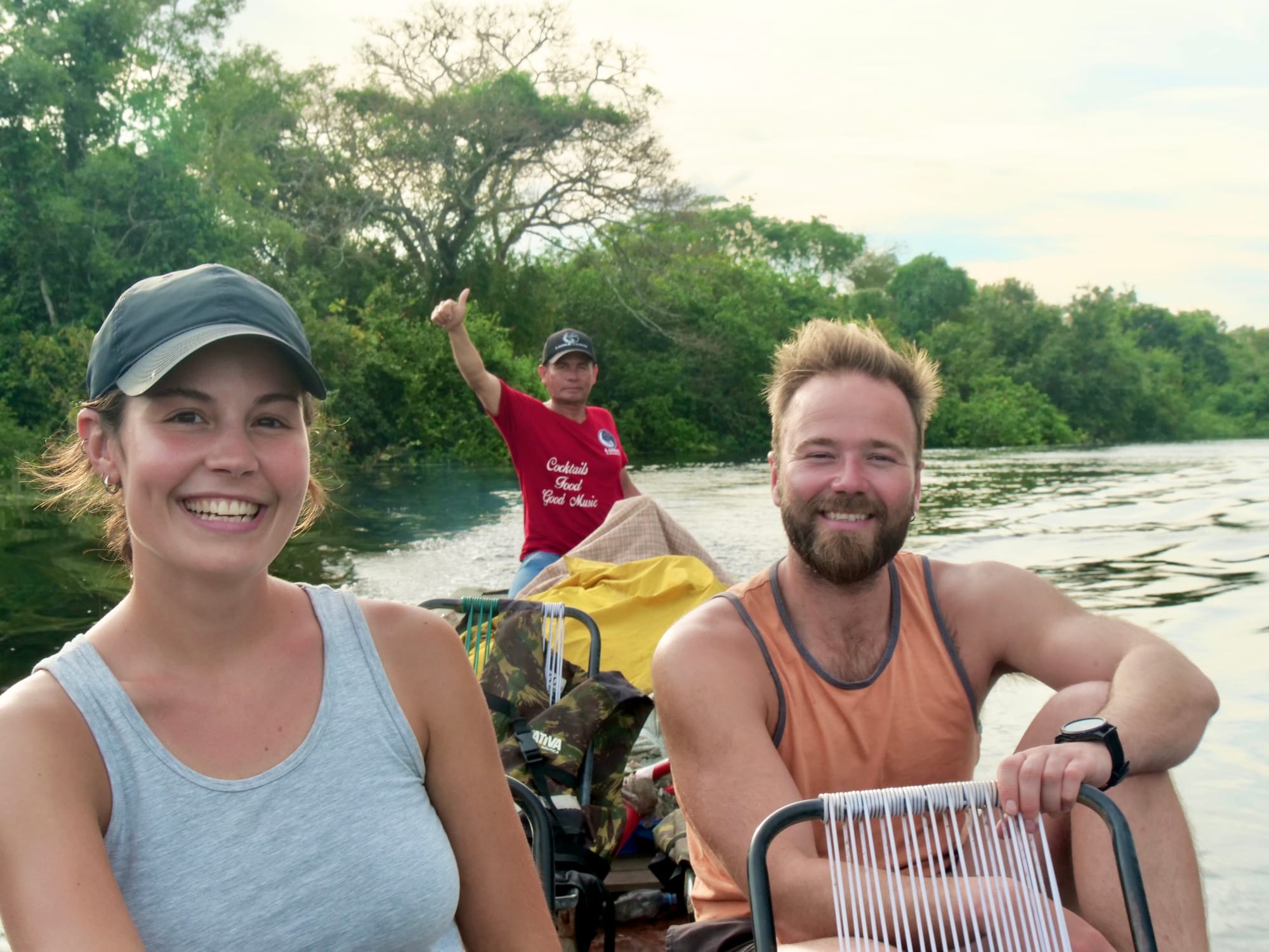 The following morning we enjoyed a slight sleep in before brekky and then a swim with the local alligators and piranhas. Jaky took us into a secluded alcove off the main river promising us it was safe. We had heard that the pink dolphins scare off the hungrier alligators and piranhas so without any of them in sight we were dubious of his claim.