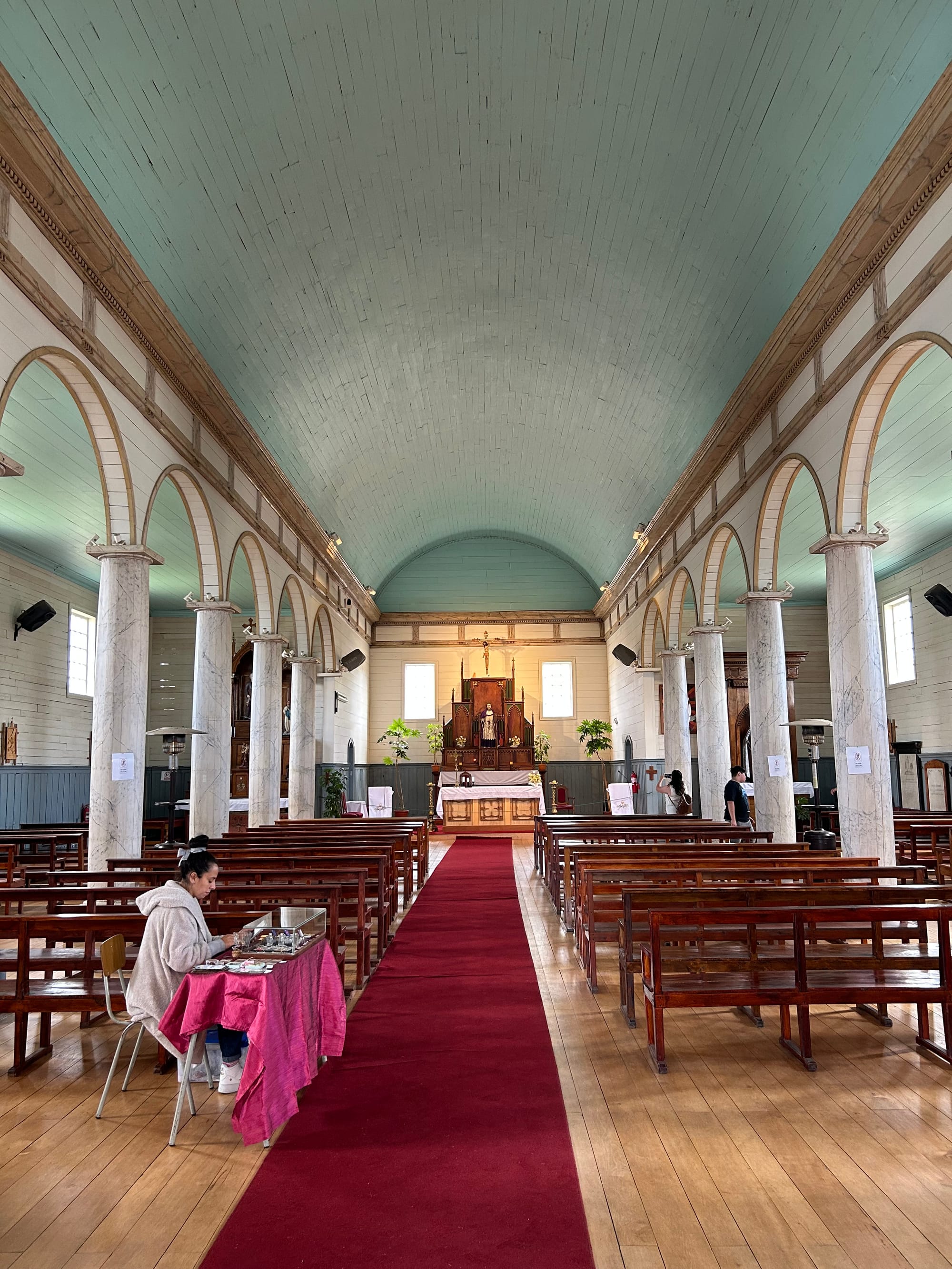 We also visited another Church, Iglesia de Dalcahue. This had beautiful colours of mint green, gold and marble white.