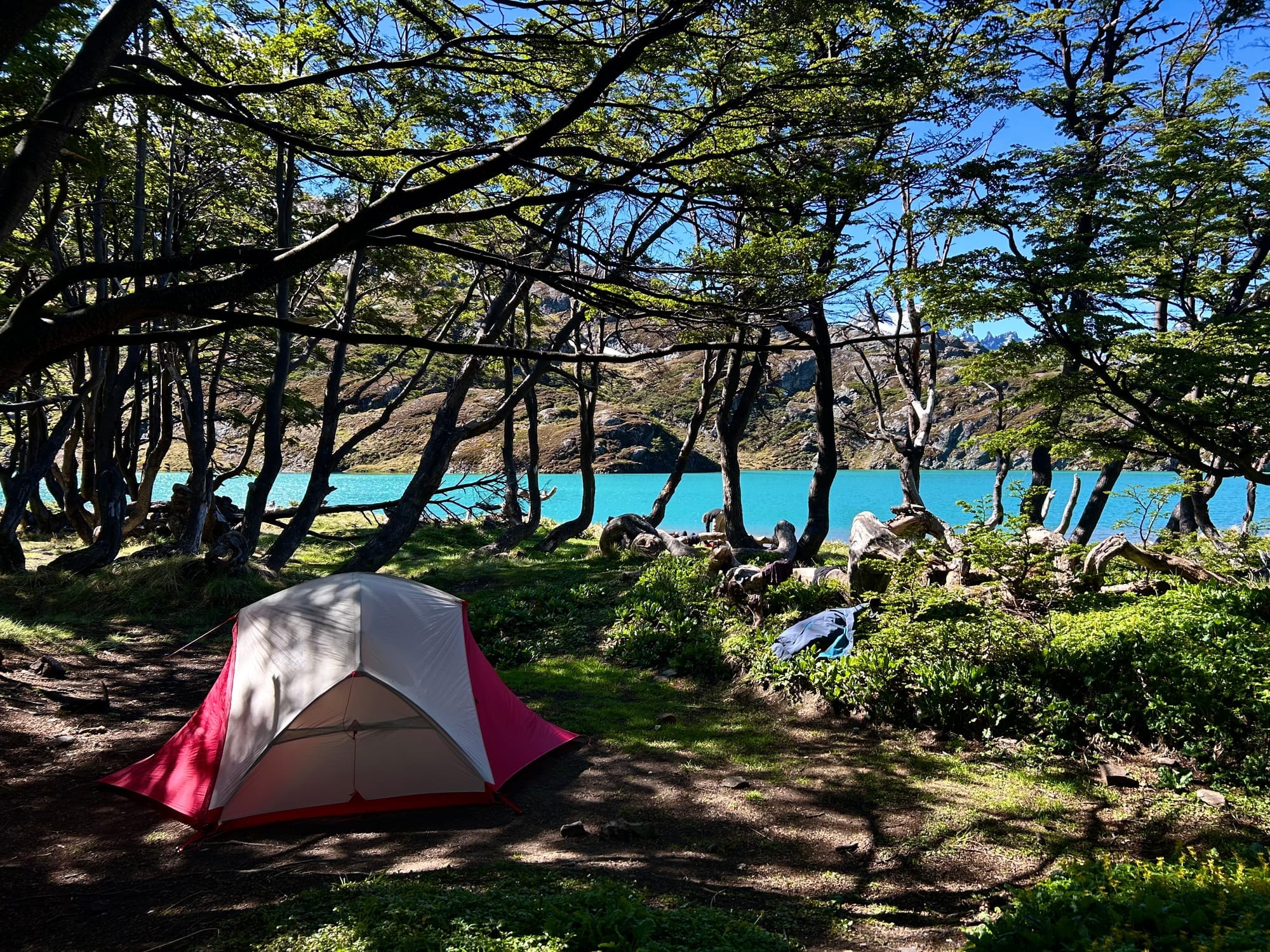 Day three and four we did an overnight tramp, where we camped the night at Laguna del Caminante. This was a loop track, with roughly 14km of hiking each day. We had sunny weather on the first day and no rain during the night, though the conditions were a bit harsher on the second day. We also had a shower of rain come through right as we were setting up the tent which made for a slightly rushed and frantic job. For context on how cold the night in the tent was, I slept in my thermals, socks, puffer jacket, gloves, and beanie while it stayed on.